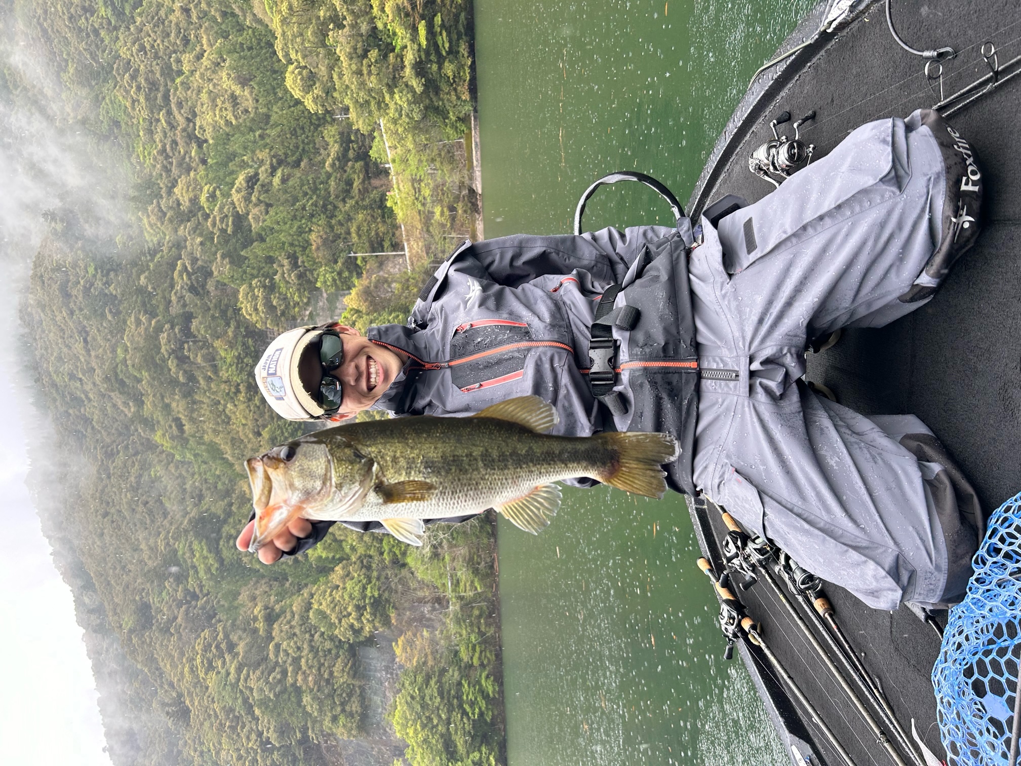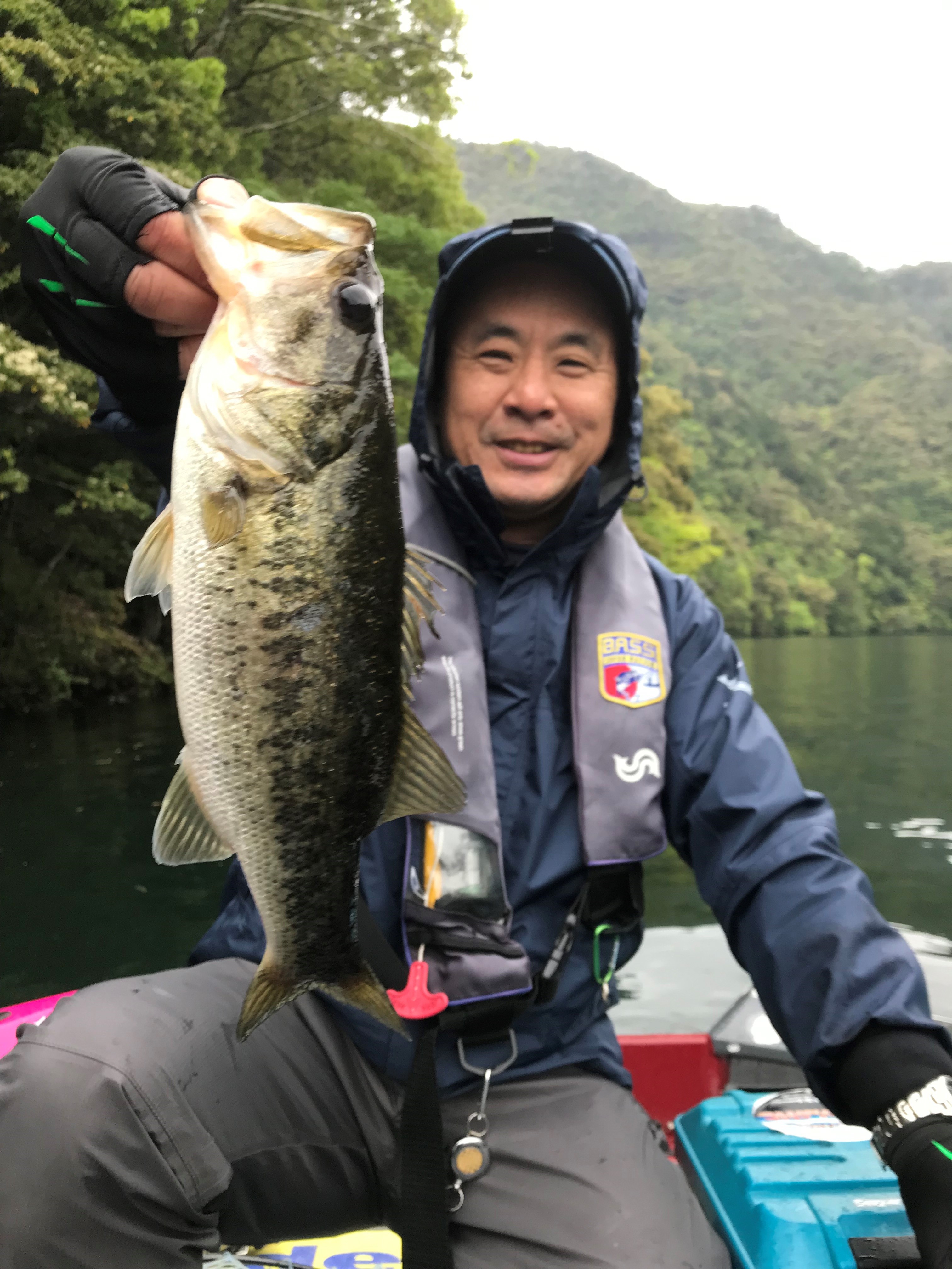 七色ダムの印象は、岸際オーバーハングだらけでキャストが難しく、バスのサイズアップも難しく、 また水位もころころと毎日増減水する難易度MAXの湖という印象です。 ボーターの吉村選手と挨拶を交わし、スタートから少し下った本流筋から終始、本流筋中流域を丁寧に釣っていき、 一段下がったところにいるだろうキーパーを丁寧に釣っていくというプランでした。 当日は、やや低水位気味でオーバーハングの鬱陶しさがややマシといったところ。 また朝スタート時はどんより曇っていた天気も次第に雨となり、肌寒い一日となりました。 釣りのほうも、釣っても釣っても、ノンキーという肌寒さに悩まされながらも、 ポツリポツリと、何とかキーパーを拾っていきました。 ただ、本当に丁寧にアクションさせないと、バイトが遠く、難しい1日であり、シンカーのウエイトにも悩みましたが バックシートでのキャストとの効率を考え、1.8~2.2gをローテーションしながら、丁寧に釣っていきました。 肌寒い雨の七色ダムは決してイージーではなかったようで、結果的には、2位入賞と、嬉しい結果となりました。 最後に、肌寒い雨の中、ボーターの吉村選手、スポンサー各社様、トーナメント運営スタッフの皆様、ありがとうございました。