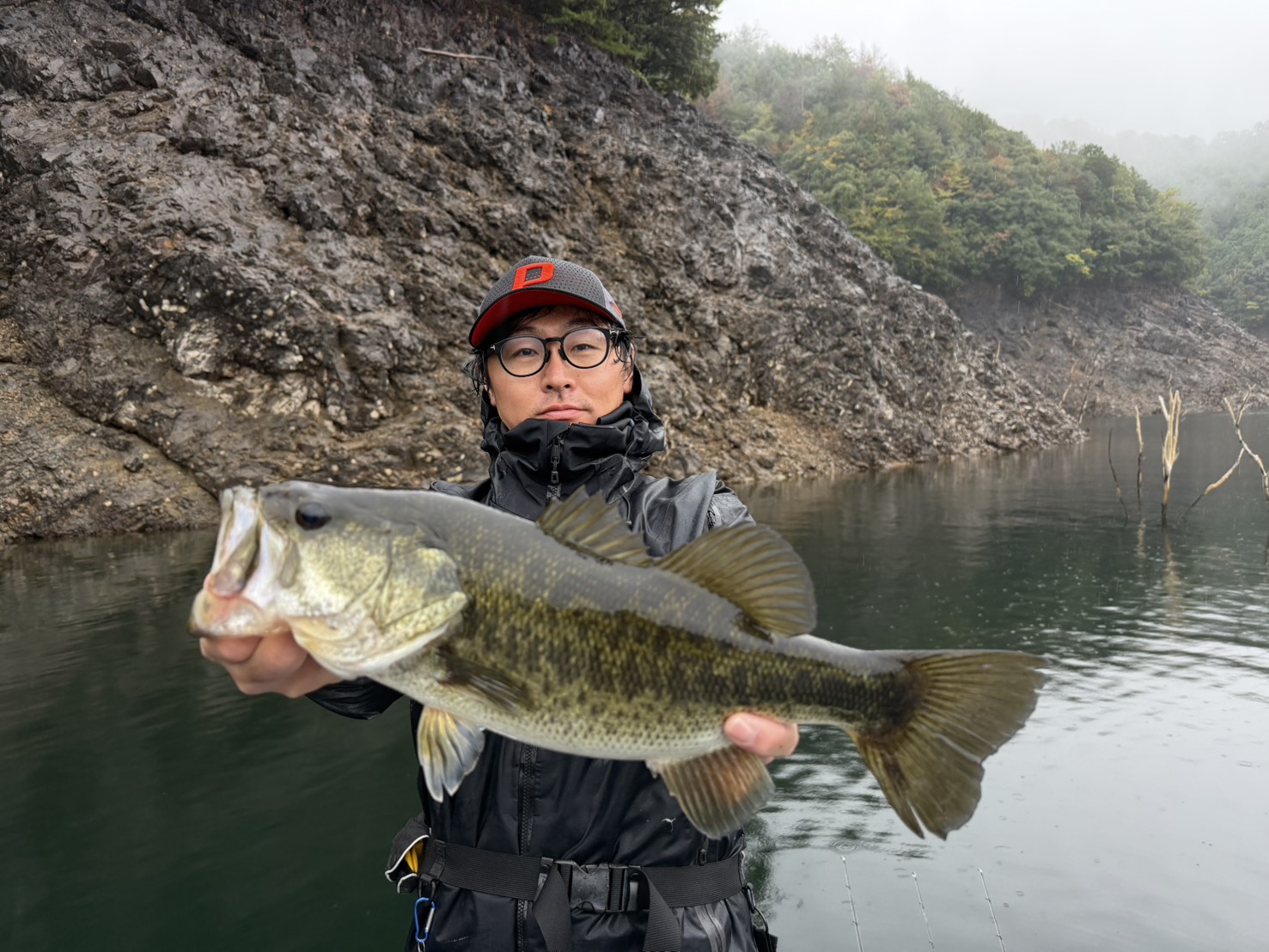 Day 2はダムサイト付近での釣りとなりました。ローライトかつ雨天という状況だったため、スイムベイトやリバウンドスティック(フリーリグ)など、より強いアプローチに切り替えましたが、それでも午前中はバイトすら得られませんでした。