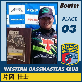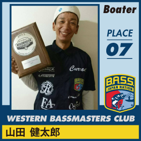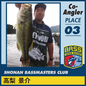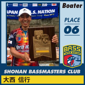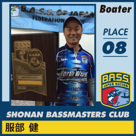スポンサー:ジャッカル、Fina(ハヤブサ) ゼナック。 デビューイヤーの今年、新利根川ではノーフィッシュの洗礼を浴びたものの、旧吉野川で初優勝。その後、野尻湖、芦ノ湖では名ガイドとしてパートナーを優勝、上位入賞に導き、本人も上位にクオリファイ。