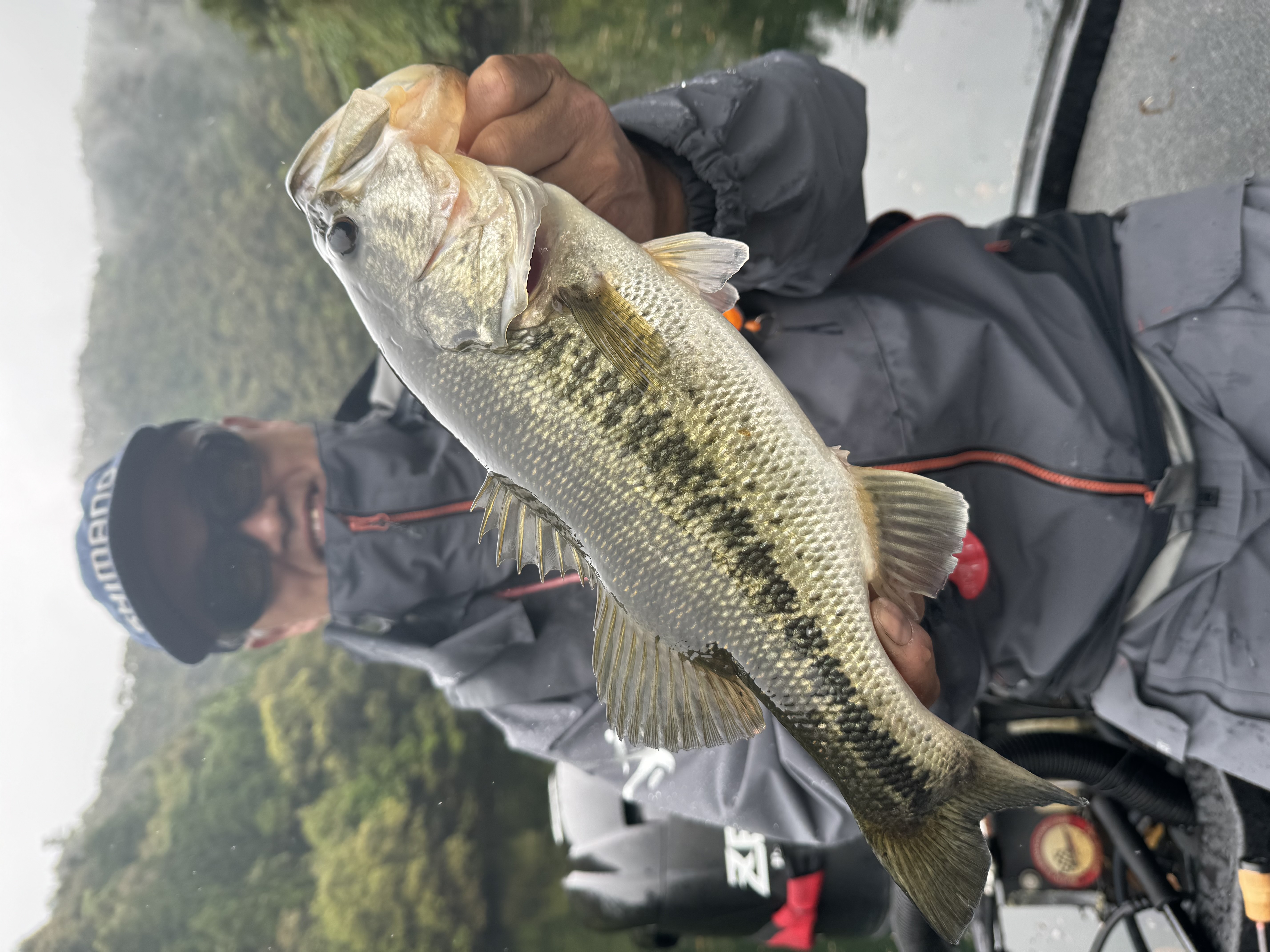 七色ダムの印象は、岸際オーバーハングだらけでキャストが難しく、バスのサイズアップも難しく、 また水位もころころと毎日増減水する難易度MAXの湖という印象です。 ボーターの吉村選手と挨拶を交わし、スタートから少し下った本流筋から終始、本流筋中流域を丁寧に釣っていき、 一段下がったところにいるだろうキーパーを丁寧に釣っていくというプランでした。 当日は、やや低水位気味でオーバーハングの鬱陶しさがややマシといったところ。 また朝スタート時はどんより曇っていた天気も次第に雨となり、肌寒い一日となりました。 釣りのほうも、釣っても釣っても、ノンキーという肌寒さに悩まされながらも、 ポツリポツリと、何とかキーパーを拾っていきました。 ただ、本当に丁寧にアクションさせないと、バイトが遠く、難しい1日であり、シンカーのウエイトにも悩みましたが バックシートでのキャストとの効率を考え、1.8~2.2gをローテーションしながら、丁寧に釣っていきました。 肌寒い雨の七色ダムは決してイージーではなかったようで、結果的には、2位入賞と、嬉しい結果となりました。 最後に、肌寒い雨の中、ボーターの吉村選手、スポンサー各社様、トーナメント運営スタッフの皆様、ありがとうございました。