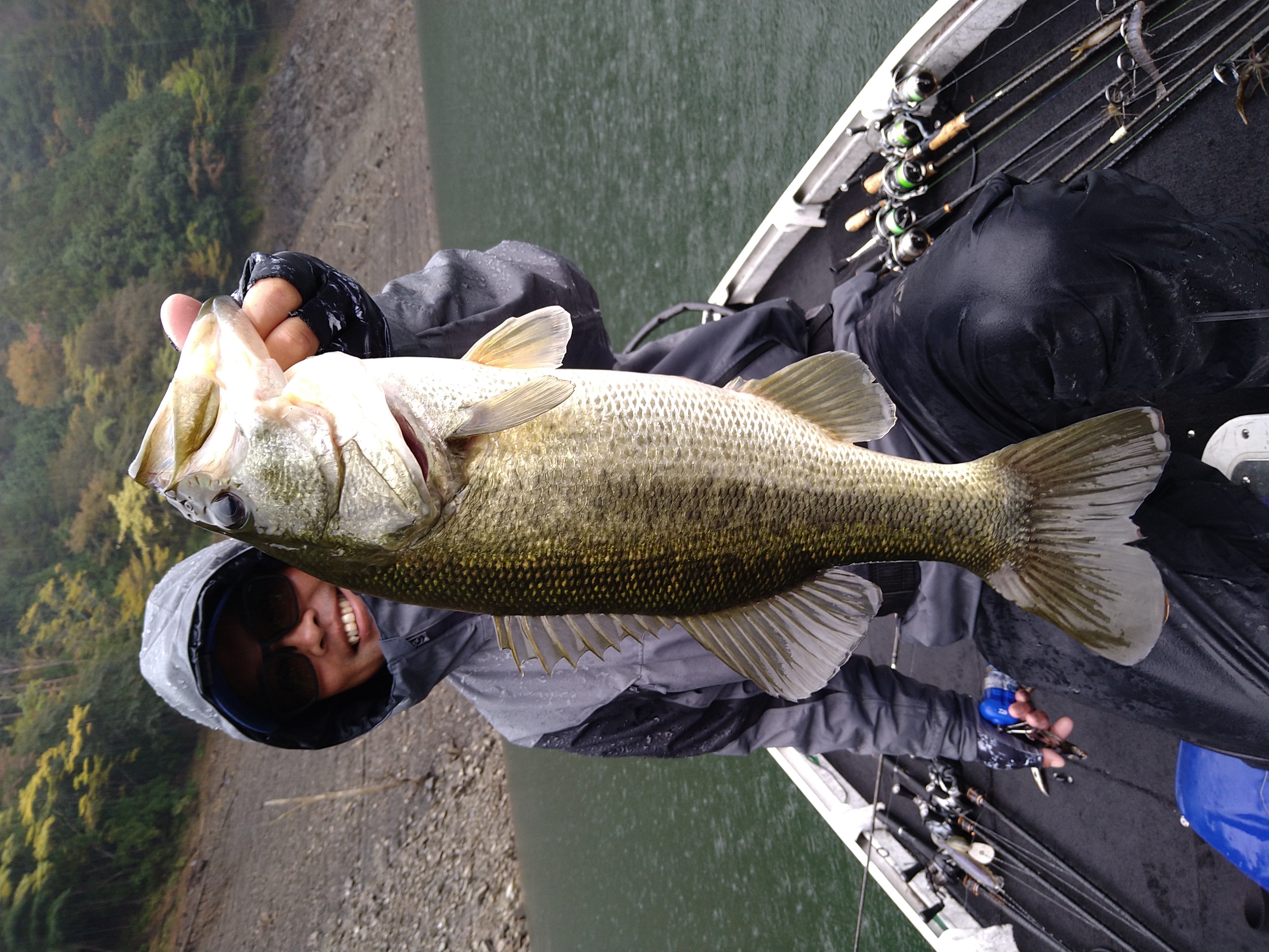 Day 2はダムサイト付近での釣りとなりました。ローライトかつ雨天という状況だったため、スイムベイトやリバウンドスティック(フリーリグ)など、より強いアプローチに切り替えましたが、それでも午前中はバイトすら得られませんでした。
