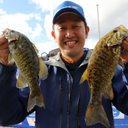 前評判ではかなり厳しい状況の桧原湖。強風下のスタート後にボーターの山本さんが向かわれたポイントはスタート地点対岸の岩盤エリア。 ほどなくポイントに到着し、釣りを開始。しばらくストレートワームのダウンショットで釣りを展開するも魚信無く、ワームをインチホッグに換えて数投で最初のバイト。 キャッチした魚は残念ながらキーパーサイズではなかったものの、感ずるところあって同ワームでキャロライナリグにチェンジ。しばらくして再バイト。 ファイト中に惜しくもバラしてしまった魚は確実にキーパーサイズを超えており、今日はこの釣りでやり切る決めた。 暫しの沈黙の後にあった3度目のバイトで待望のキーパーをキャッチ。サイズは大きくなかったが何となく気持ちが落ち着く。 それから魚信は続かず、ボートもポイント突端部付近まで来ていた。このまま競技終了かと思われ時にキャッチした魚は最初のキーパーを大きく越えたサイズ。 結局、2本の魚を検量に持ち込む事ができ、1055グラムのウエイトで参戦3年目にして初めて表彰の栄誉にあずかることが出来ました。 大会をご協賛いただきましたスポンサー各位、大会運営に尽力された役員の方々、ショーナンバスマスターズの諸先輩、ボーターの山本様ならび今シーズンご同船させていただいた方々に心より御礼申し上げます。