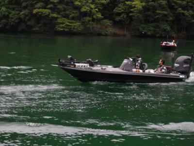 プラクティスとは打って変わり魚の反応が思わしくなく朝一番のポイントから移動、60スロープ下流域にあるストレッチにてキロアップ1本、後が続かずダムサイトまで移動し2本追加にて終了。今回はボーターの適切なポイント選択ならびボートポジションに助けられました。