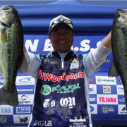初めての旧吉野川というフィールドで先入観もなく自分のスタイルを貫けたことが今回の結果に結びついたと思います。前日プラで唯一魚の反応があったのがラバージグですが、当日の状況とボーターさんが選択したポイントに合わせ2.6グラムのライトテキサスで朝のうちにキーパーを2本釣ることができました。 その後だんだんと風も出てきて釣れない時間も長かったですが、帰着1時間ほど前にビッグフィッシュ賞となる47㎝のバスを釣り上げることが出来ました。この時、風が強くなったのと新しく入ったポイントの水深に合わせてシンカーを3.5グラムに変えていました。リグの変更点はこの1点だけです。とにかく普段私が得意とするスタイルがトーナメント当日の旧吉野川の魚にマッチした。 それに尽きると思います。次戦は釣りの経験のあるフィールドですので引き出しを多くして挑みたいと思います。