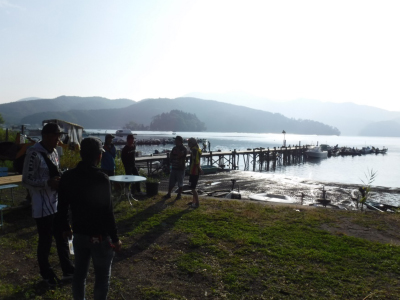 野尻湖では表面水温が下降し始める盆明け頃を境に、パターンが動くことを念頭において、8/14,15,17,18 の計4日間プリプラに入りました。 各エリアをチェックしましたが、サイズが大きく比較的安定していたディープフラットの、ワカサギ周辺をスクールする魚を中心に、ゲームプランを立てました。 特に台風明けの8/17は、菅川と大崎沖合の10mラインで、キロフィッシュを8本掛けて、この内5本を水深6mのミドストで獲れたことが、後々良い結果につながりました。