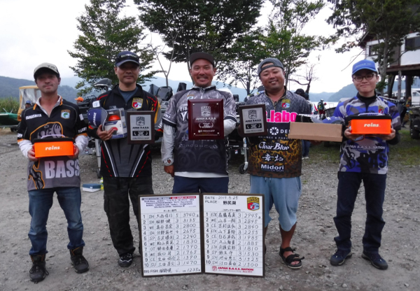 2019年8月25日(日)長野県野尻湖で2019年レギュラー戦最終戦となるJAPAN B.A.S.S. NATION TOURNAMENT 第5戦が行われました。前週までのプリプラクティスまでの下馬評ではビッグリミットの乱打戦になるだろうと予想されていました。しかし、そう簡単にいかないのもバストーナメント。前日プラを終えた選手からは「5本5㎏」の声と「バイトが取れない」のまさに「天国と地獄」。だんだんと厳しさを増していく野尻湖に対応し最終戦優勝栄光をつかんだのは、他の釣果を気にすることなく自分のエリア、自分の釣りを信じやり通し唯一のリミットメイクを果たした大西選手!また2位の服部選手も同エリアであり、全体的にローウェイトで終わったこの試合で、いかに両者が野尻湖をうまく読み解いたかが見て取れます。