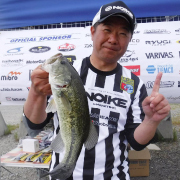 前日プラクティスは試合当日にペアを組む岡田さんのバックシートに同船させていただきました。魚を掛けずにバイトだけ取るためにフックポイントにキャップを被せてほぼ全域をチェックして回りましたが、2人で手分けして多数のバイトを取ることができたのでプラクティスの感触としては良かったです。比較的どのエリアでもバイトは取れますが、集中的にバイトが多く出たエリアを中心に、そこから近い場所エリアを3箇所ほどローテーションする作戦で本番に臨みました。 大会当日は2番フライトだったので前日プラクティスで好反応だったエリアに入ることができ、開始早々グッドサイズをキャッチ。リグはNOIKE『Smile worm Mammy』の2.6gネコリグ。この時期の旧吉野川では最もバイトが引き出しやすいリグだと思います。その後ポイントを休ませる意味で別のエリアへ移動しますが、入りたい場所には先行者がいたりして、思うようにはポイントをローテーションできない状況。最後にもう一度最初のポイントに入って岡田さんがグッドサイズをキャッチ。そこでタイムアップとなりました。この時期の旧吉野川にしては思いのほかローウエイトだったことに助けられて4位入賞ができましたが、プラクティスの感触からすると、もっと釣れていても不思議ではない状況だったんですが・・・。 最後に運営スタッフの皆様、ボーターの岡田さん、色々ありがとうございました! 次戦も宜しくお願い致します。